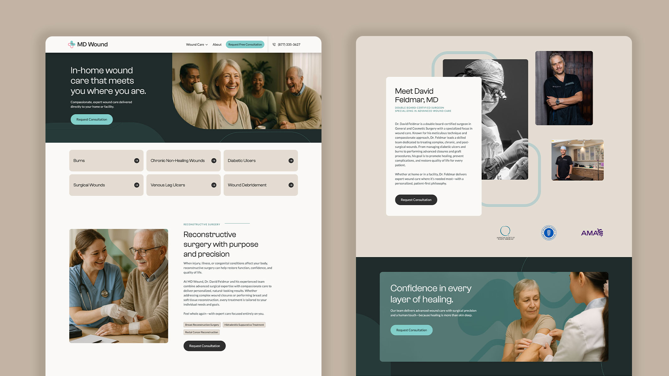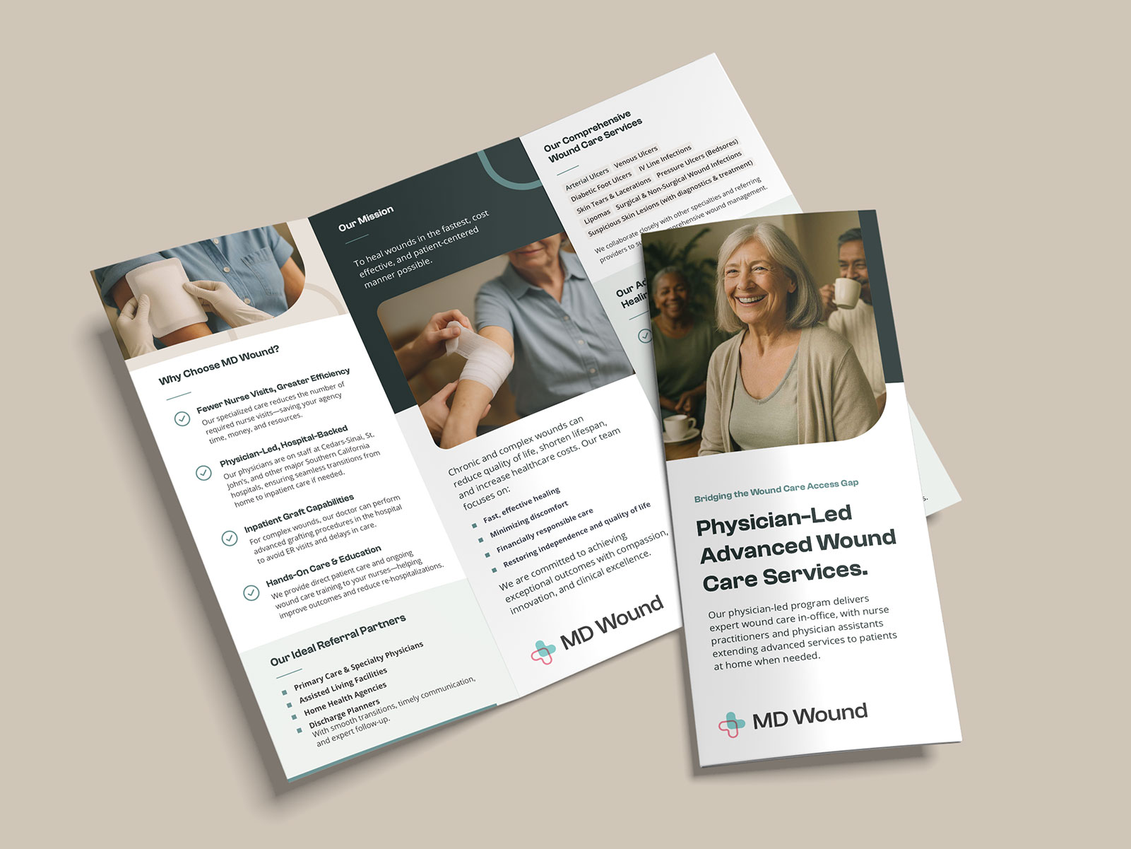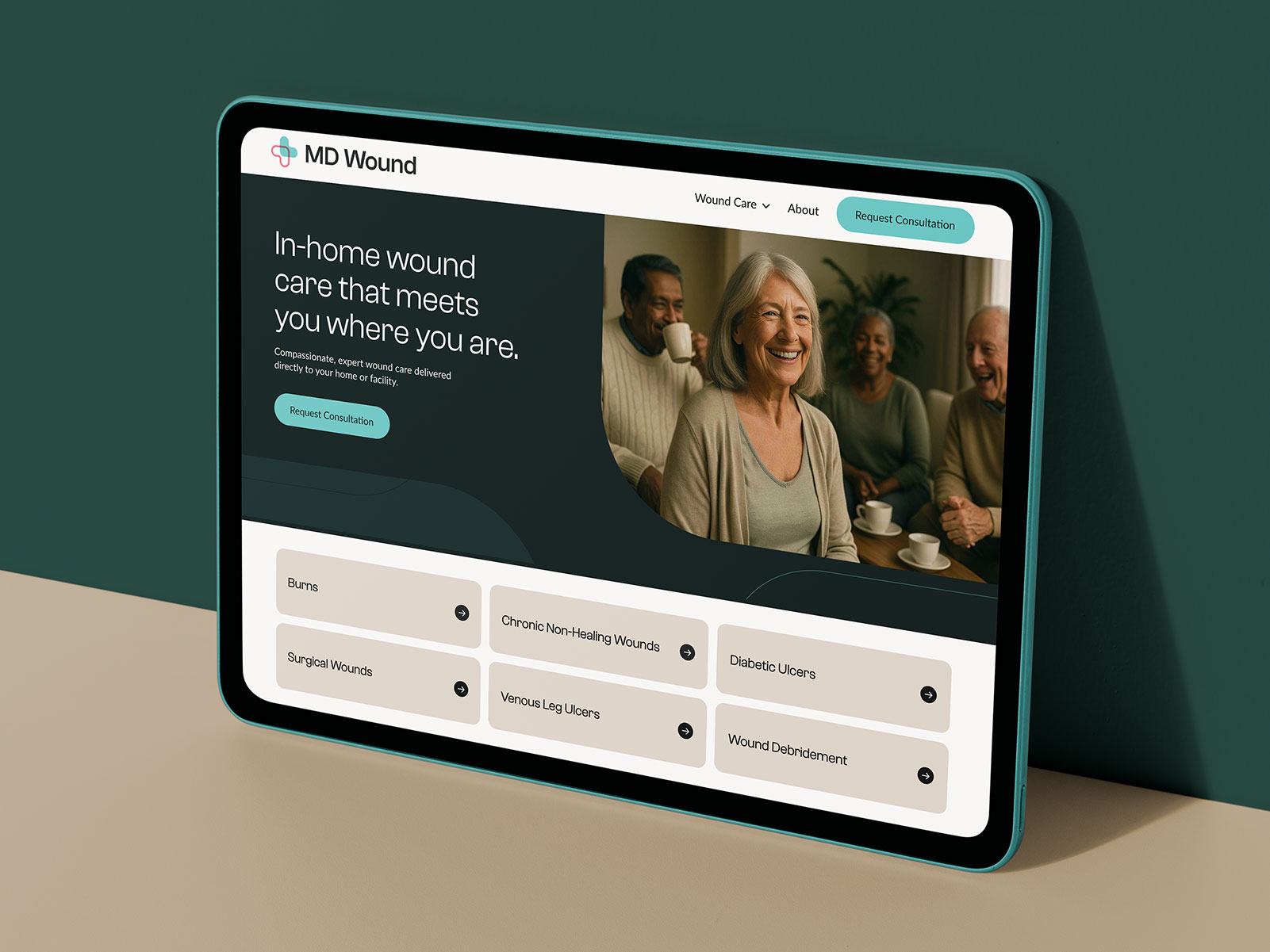 MD Wound was created to break off from an existing plastic surgery practice and establish a new brand focused entirely on physician-led wound care. The mission: deliver advanced care directly to patients in their homes and expand services throughout Southern California.